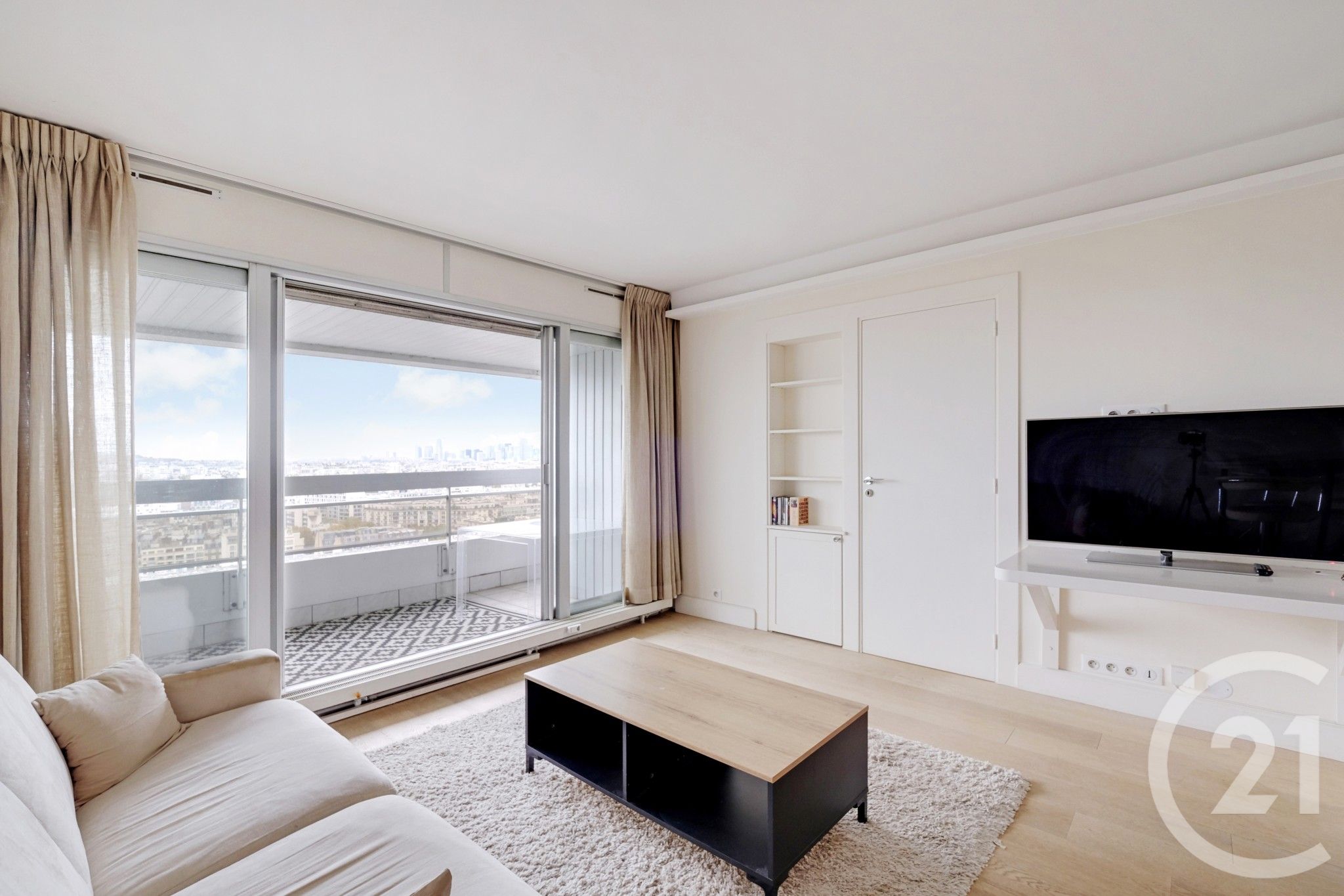 Le véritable atout de cet appartement est sans conteste son balcon de 10 m², offrant une vue spectaculaire et dégagée sur la Seine un cadre rare et privilégié pour profiter du calme et du panorama parisien.