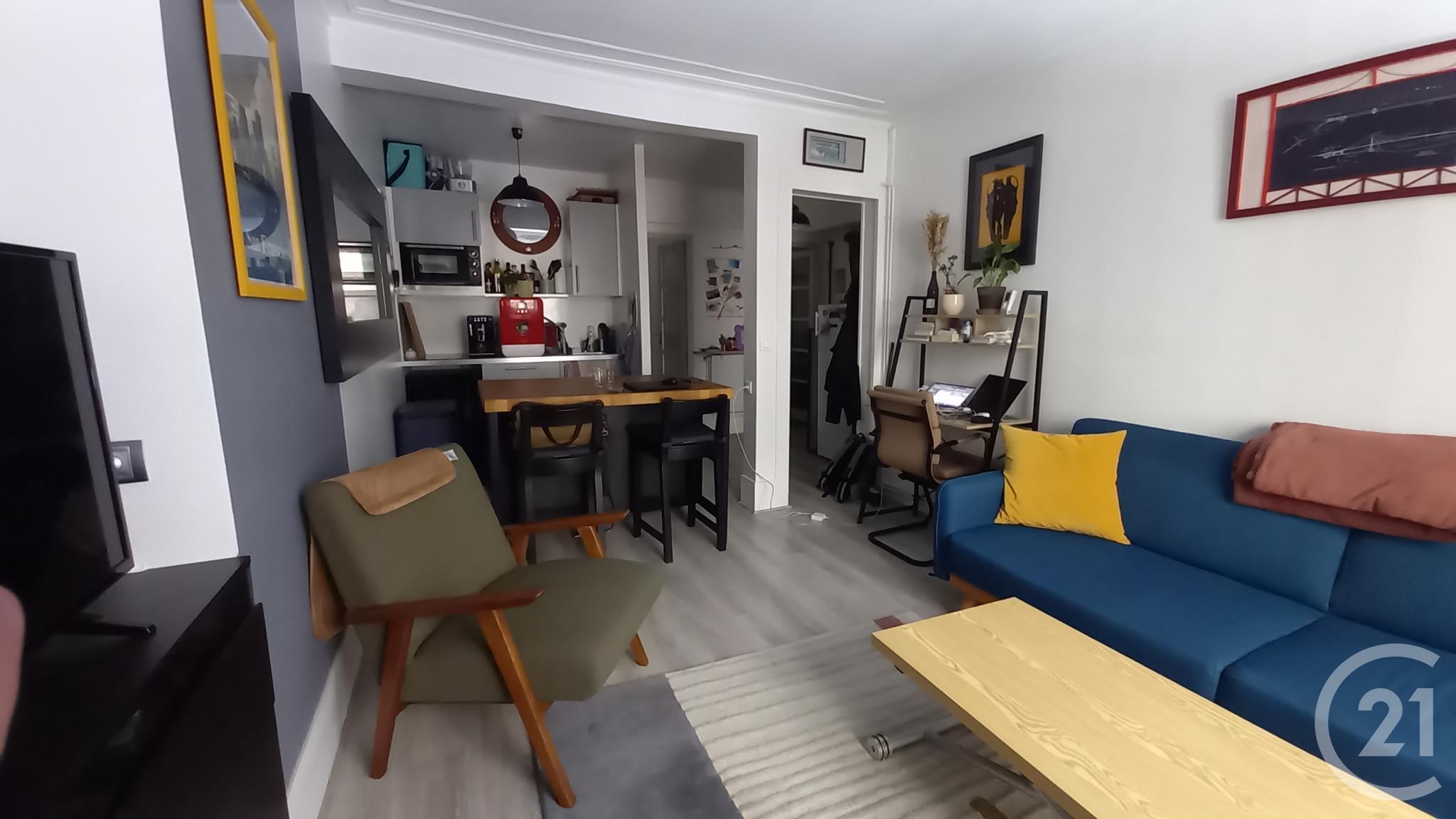 Au 1er étage sans ascenseur dans une résidence de bon standing, un appartement 2 pièces loué semi meublé en très bon état comprenant: Une entrée, une pièce principale avec cuisine ouverte aménagée et équipée, une chambre et une salle de bains avec wc.